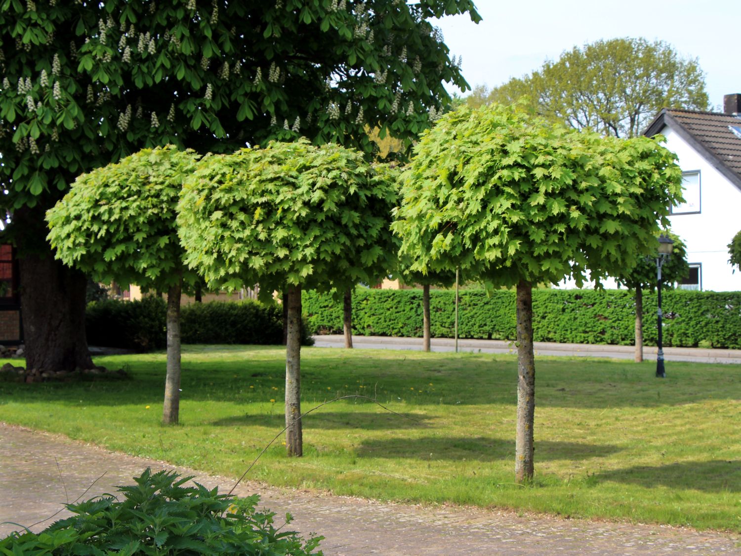 En áreas grandes y espaciosas, se colocan árboles altos con coronas anchas, pero para espacios limitados esta opción es inaceptable: estas especies pueden oscurecer el espacio casi por completo, evitando la posibilidad de un desarrollo normal del tamaño insuficiente.