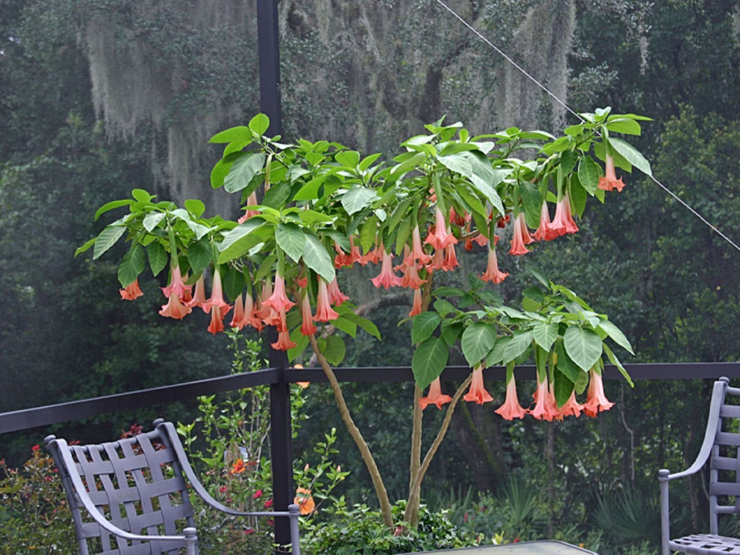Brugmansia fragante - prefiere suelo “grasiento”, mucha luz, no difiere en resistencia a las heladas - requiere refugio confiable para el invierno o cultivo en tinas, de hasta cuatro a cinco metros de altura. Las flores miden hasta 30 cm de largo; su color es blanco verdoso.