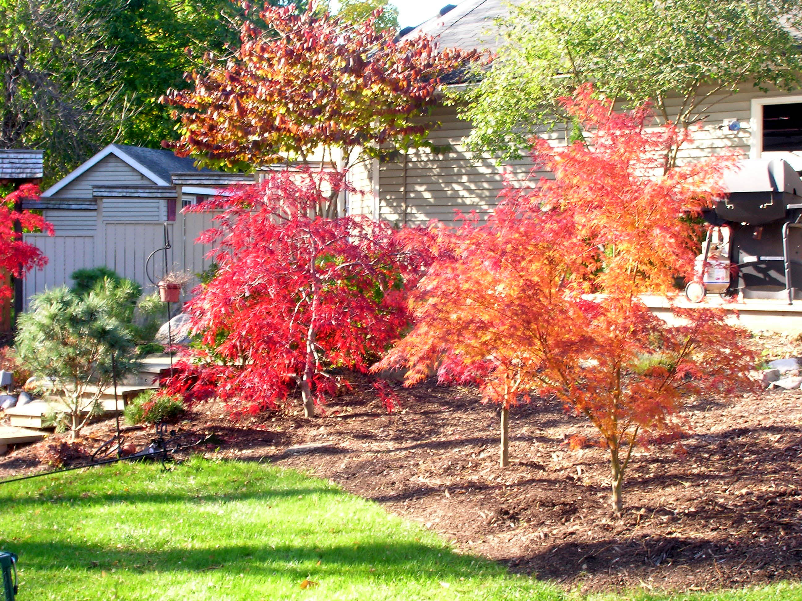 Árbol de pan de jengibre o carmesí japonés: crece bien en áreas bien iluminadas, pero a causa de la luz solar directa, es posible que se quemen. Le encanta el suelo húmedo y ligeramente ácido. Follaje en forma de corazón, satén rosado en primavera, carmesí dorado en otoño;