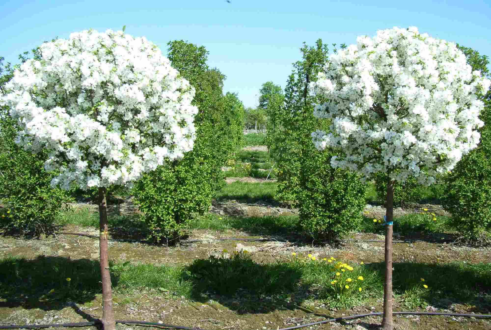 En presencia de amplios espacios libres, algunos árboles se usan como tenias, plantas fotófilas, plantadas en un área abierta. A menudo parten el tronco para que el árbol resulte ser tan ramificado que se extiende y tiene un aterrizaje bajo. En algunos casos, los jardineros, utilizando técnicas especiales, forman una corona esférica, cónica, sombrilla, piramidal y llorona. Con menos frecuencia, se plantan varias plantas idénticas una cerca de la otra, gradualmente crecen juntas, desde una distancia que parecen una.