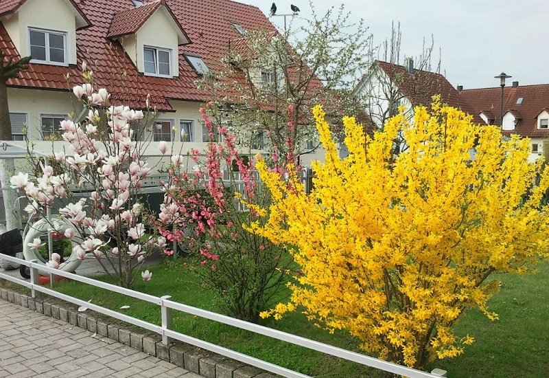 Brillantes heraldos de la primavera se convertirán en un adorno para cualquier sitio. Algunas variedades pueden desarrollarse y florecer en condiciones severas de latitud media, Siberia. Tipos populares de forsitia: europeo, intermedio, ovoide. Antes de plantar un arbusto brillante, debe tenerse en cuenta que la planta es fotófila, prefiere suelos calcáreos. Se verá más impresionante si lo coloca sobre un fondo de coníferas.
