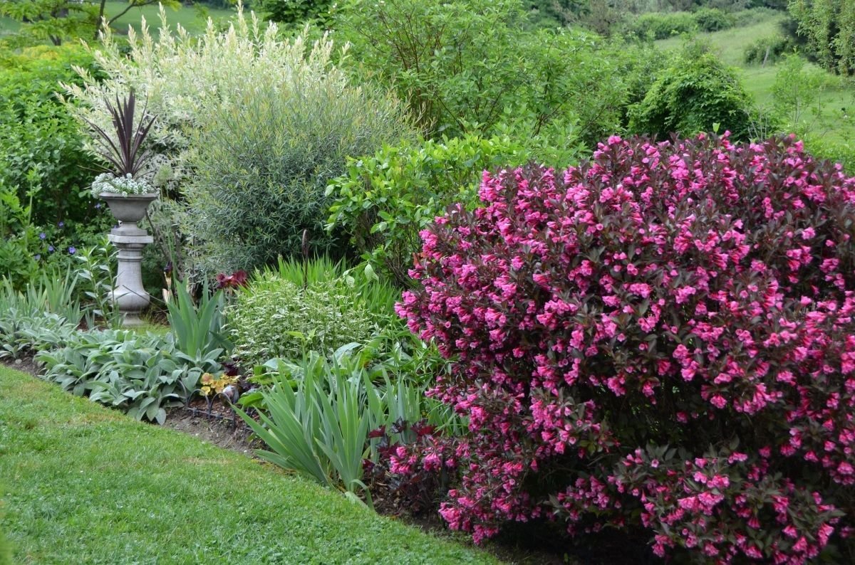 Ninguna parcela de jardín moderna puede prescindir de un paisaje de calidad. Los arbustos decorativos de varios tonos y tamaños aportarán toques vívidos a la composición natural general. La presencia de incluso un pequeño arbusto en flor hará que el área de relajación sea elegante y festiva.
