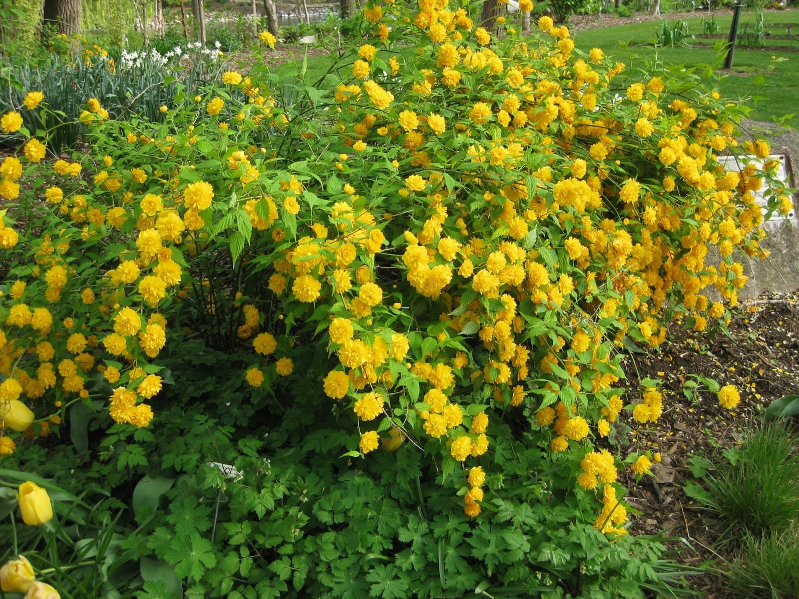 Arbusto fácil de cultivar: el mejor en su adaptabilidad. Al decorar un jardín, Kerry Japanese puede convertirse en el representante más llamativo creando un fondo. Con una planta sin pretensiones, incluso un jardinero novato se las arreglará con calma. La altura promedio del cultivo es de 2 metros, está regulada por el cultivo, el moldeo.