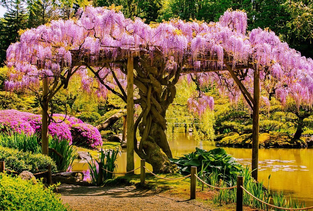 Wisteria es una lian con forma de árbol de la familia de las leguminosas. Los brotes de rápido crecimiento pueden elevarse hasta 10 metros. El verdadero valor de las enredaderas es domo, exuberantes inflorescencias. Su longitud máxima es de 80 cm. Las flores florecen en ellas a principios de la primavera, incluso antes de la aparición de las hojas. En total, hay 10 variedades de plantas.