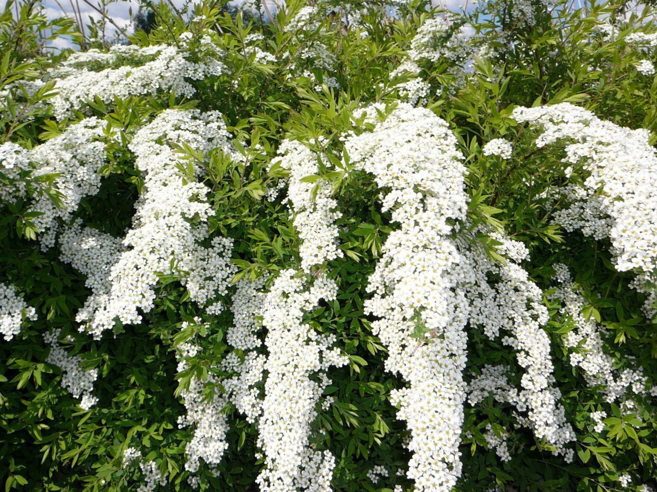 Floración de primavera. Además de la floración temprana, tales espireas tienen flores de color exclusivamente blanco y tonos aproximados. Florecen en los brotes del año pasado. El macollamiento fuerte es característico de las plantas. Las variedades populares son spirea gris, Nippon, Argut, Wangutta.