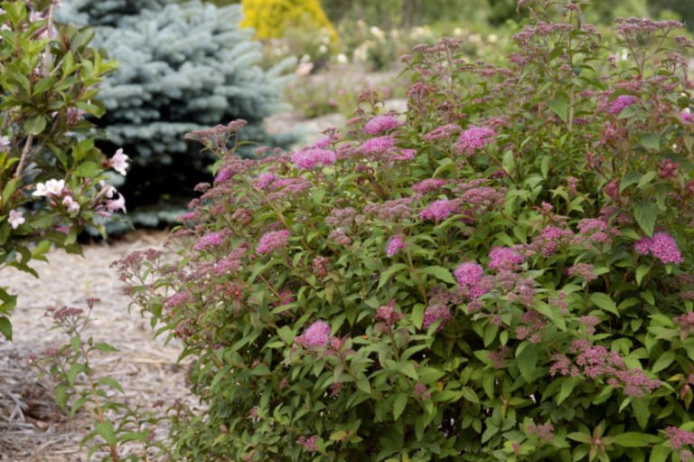 El verano florece. Los brotes viejos se secan, por lo que se forman inflorescencias en nuevas ramas jóvenes. En la mayoría de las variedades, la spirea es rosa, pero es roja, lila. Variedades populares: japonés, Bouvalda, Billarda.