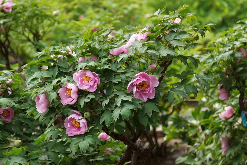 El aspecto derivado artificialmente es apreciado por sus cualidades decorativas. El arbusto caducifolio perenne tiene tallos erectos y lignificados. El arbusto hemisférico da crecimiento anual. Un árbol de peonía florece durante toda la temporada, dependiendo de la variedad, principalmente en mayo. Este período es de 2 semanas. Las flores son grandes (20 cm), pueden tener pétalos dobles y lisos. En un arbusto cabe hasta 80 flores.