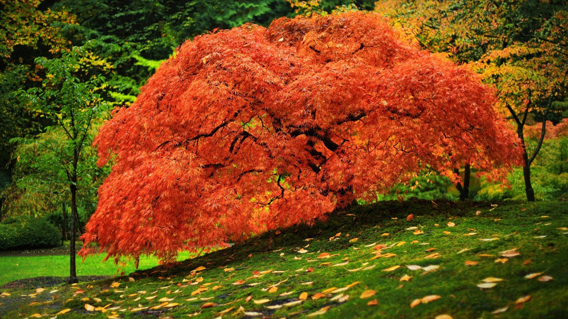 Arbusto caducifolio ornamental originario de Japón. Puede ser un mini arbusto o un árbol completo de alto grado de hasta 10 metros de altura. Crece muy lentamente. En verano, las grandes hojas lobuladas tienen un color verde, en otoño cambia a rojo ardiente. La corona de arce es grande, se extiende.