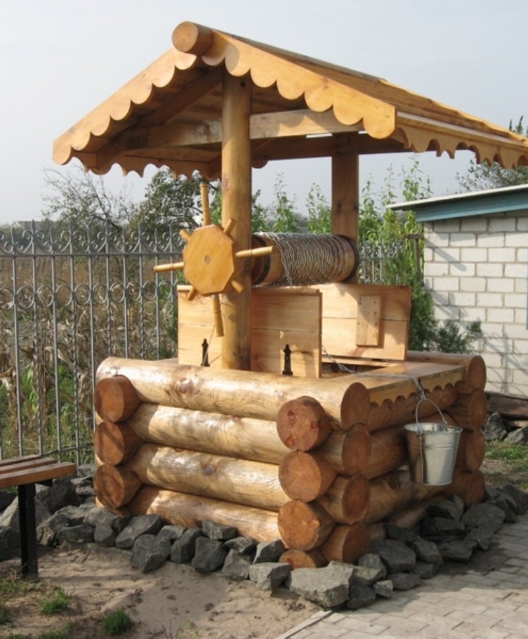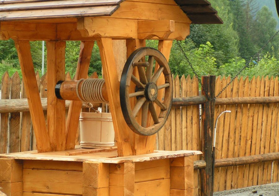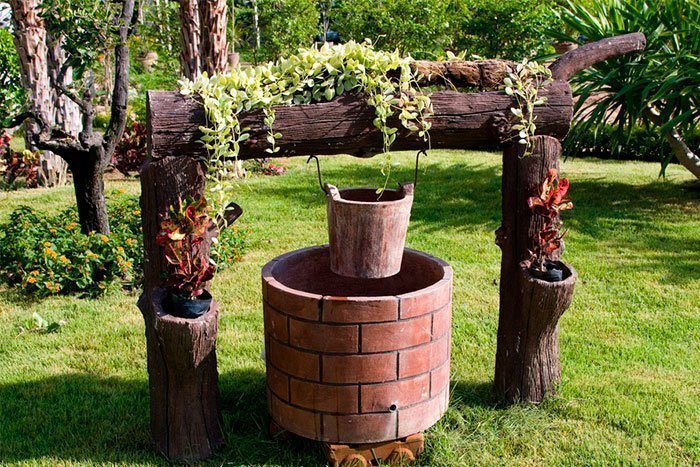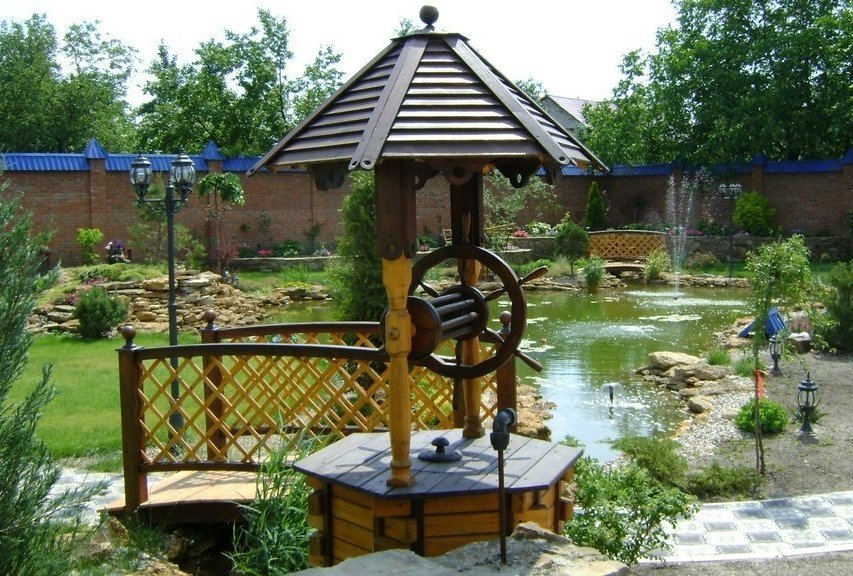El pozo debe ser adecuado para el otro diseño del sitio, no ser superfluo en él, no saturar el espacio. El paisaje que lo rodea debe crear un conjunto único.