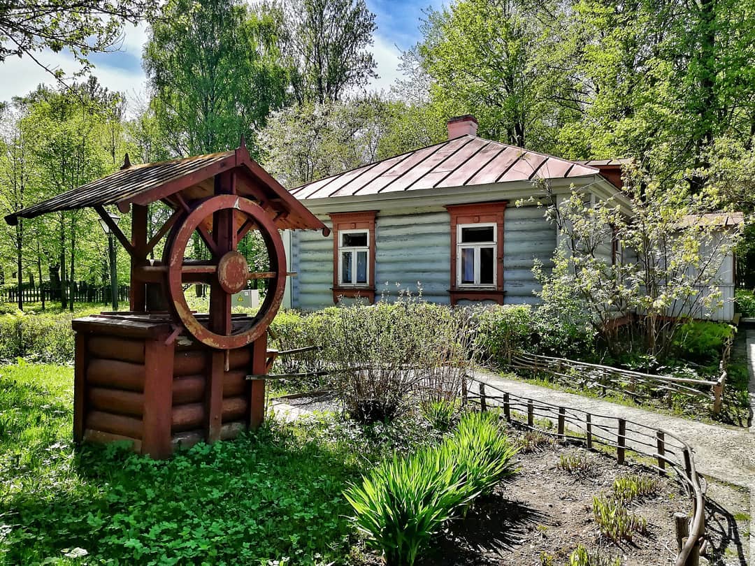 Teremok ruso: un pozo de casa tallado que se asemeja a una torre. Un patín en el techo, tallados de animales, a continuación: un banco tallado, si hay un estanque cerca, luego un puente de madera con barandas talladas a través de él. En el interior se puede resaltar;