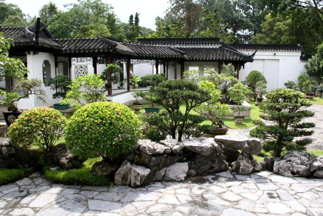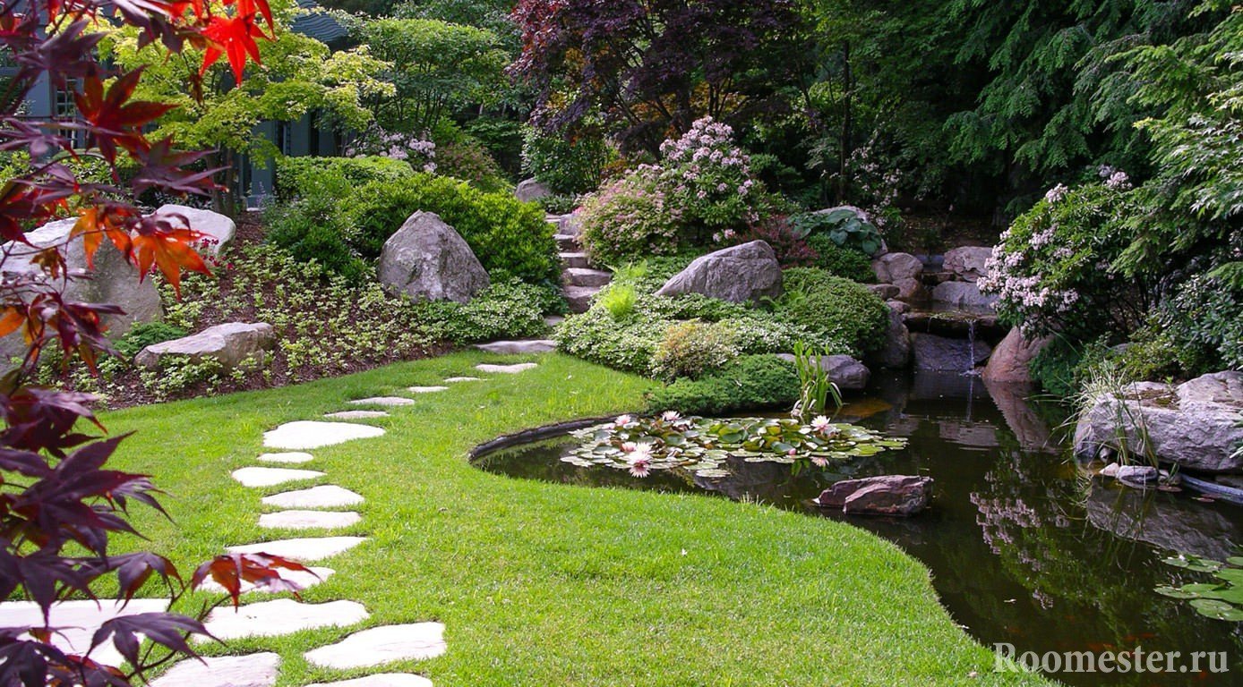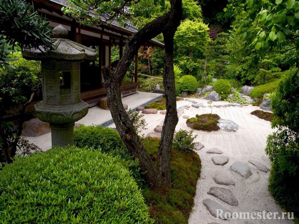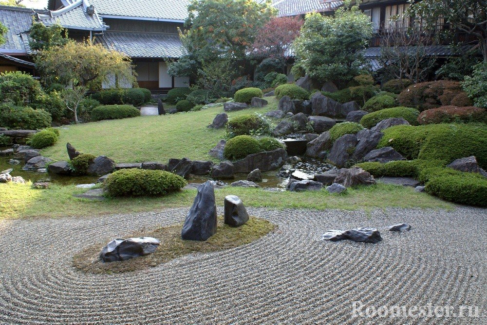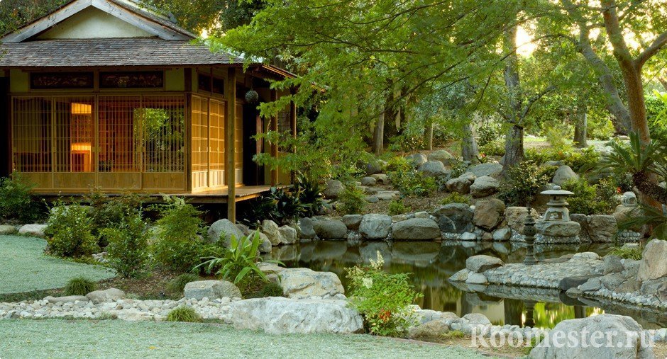 Al organizar el territorio en estilo oriental, no se hace nada así. Cada elemento tiene un significado específico. Esta verdad se puede ver en todo, desde la disposición correcta de las piedras hasta las islas de agua, junto a las cuales puedes practicar meditación o simplemente relajarte del ajetreo del mundo exterior.