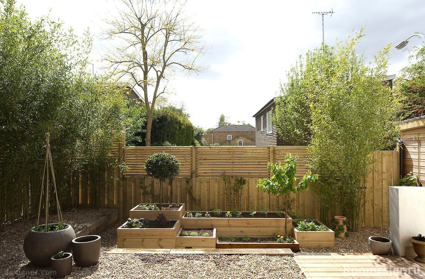 Al igual que en la disposición de otras zonas, los caminos convenientes están hechos de ladrillo o losas de pavimento. Se plantan espacios verdes que enmascaran objetos: viñedos, plantas trepadoras.Típicamente, la zona económica se encuentra al lado del territorio asignado para la plantación de jardines.