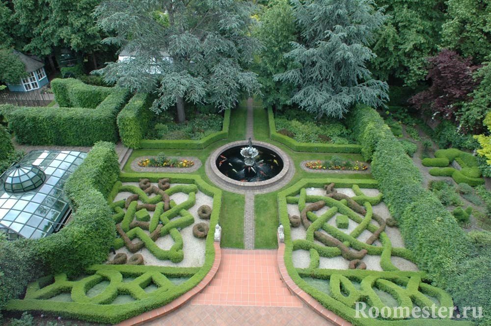 El diseño clásico del paisaje del sitio es una simetría estricta en todo. Las formas claramente definidas de senderos de jardín, macizos de flores y arbustos se combinan en un solo concepto que interpreta el orden, un cierto dominio sobre el caos. Debido a la impecabilidad de las líneas, se recrea cierta artificialidad de las formas geométricas, donde el centro del universo es una composición grande, una casa, una fuente o un gran macizo de flores frescas. El estilo clásico es adecuado para sitios con un área grande, el relieve está nivelado previamente y se rompe un jardín de impresionante belleza en el plano abierto.