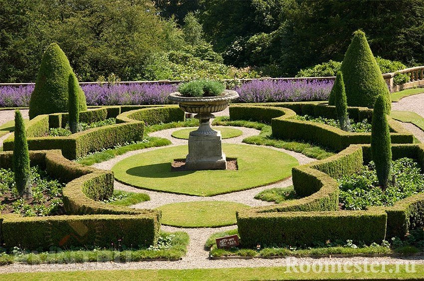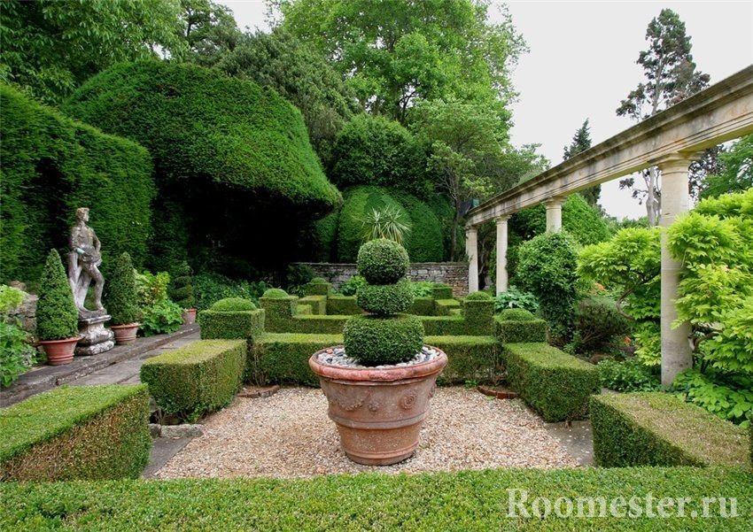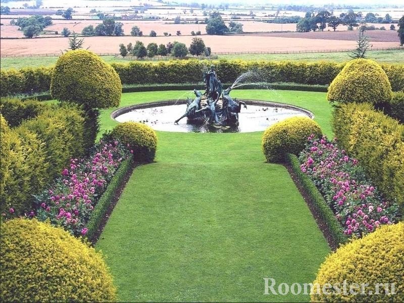 En el mundo moderno, el estilo clásico es el más caro, cuando se crea utilizando solo materiales naturales y caros. Fuentes de granito, magníficas esculturas, muebles de jardín de maderas caras: todo esto es un estilo clásico, o como también se lo llama, regular. En el sitio, se plantan principalmente arbustos y árboles que se prestan bien a la cizalla. Se da preferencia al topiario, plantas de enebro, álamos piramidales. Los árboles se plantan en forma de callejones, los macizos de flores tienen formas estrictas. Las flores para plantar eligen variedades reparadoras, que proporcionan una floración exuberante en el área del jardín durante todo el año.