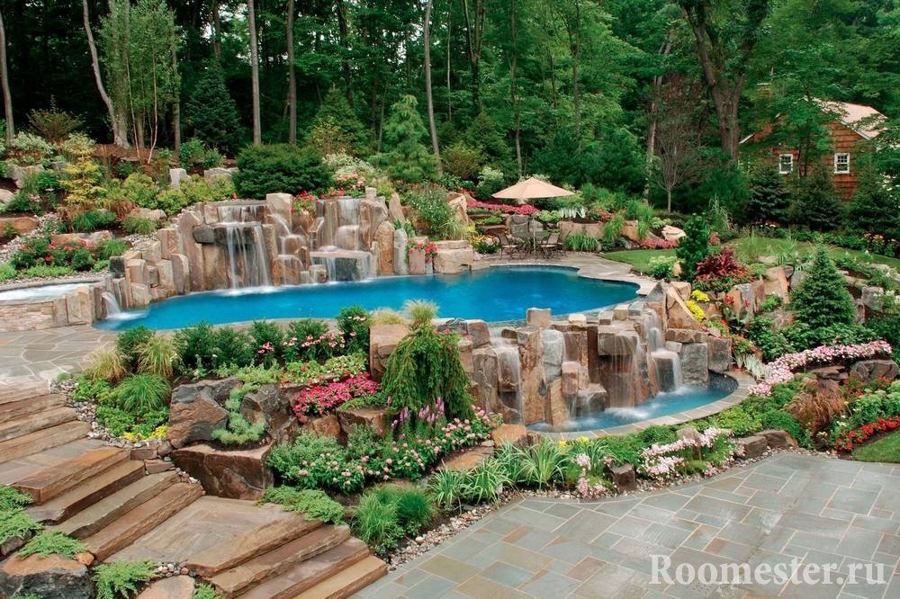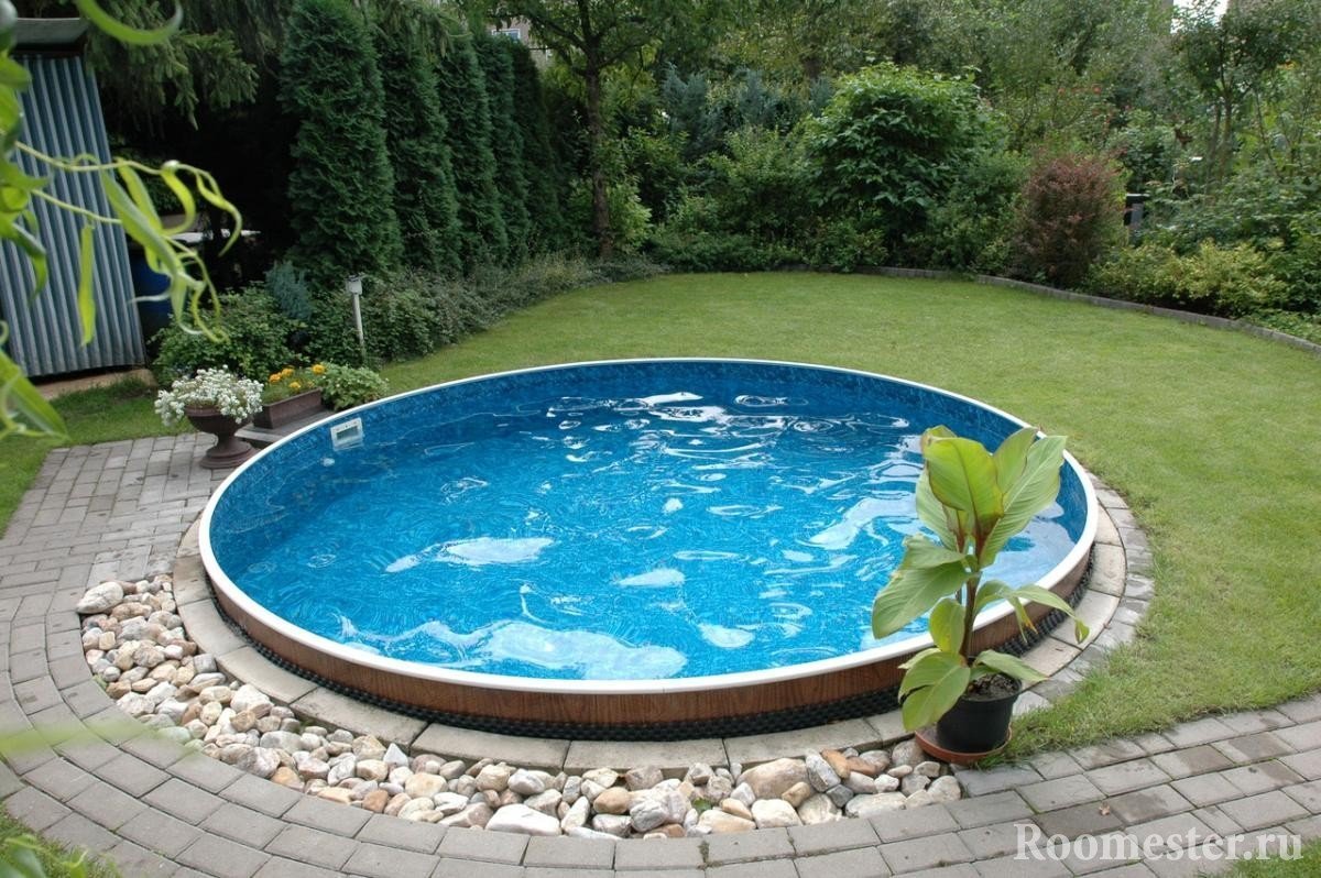 ¡IMPORTANTE! El parapeto de la piscina debe tener una valla confiable y caminos pavimentados no resbaladizos. El área de recreación está escondida de miradas indiscretas, ya que estos altos arbustos y árboles se plantan alrededor de su perímetro.