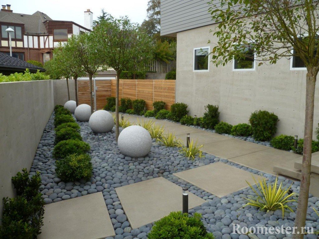 Recientemente, el diseño del paisaje traza el deseo de minimalismo. Consiste en un mínimo de elementos decorativos y formas geométricas regulares. Orden en todo, una gran cantidad de espacio abierto: todo esto es inherente a este estilo.Para el minimalismo, los setos y varios esquemas de color no son peculiares. Los macizos de flores se crean a partir de varias especies de plantas, que tampoco difieren en diversidad y brillo.