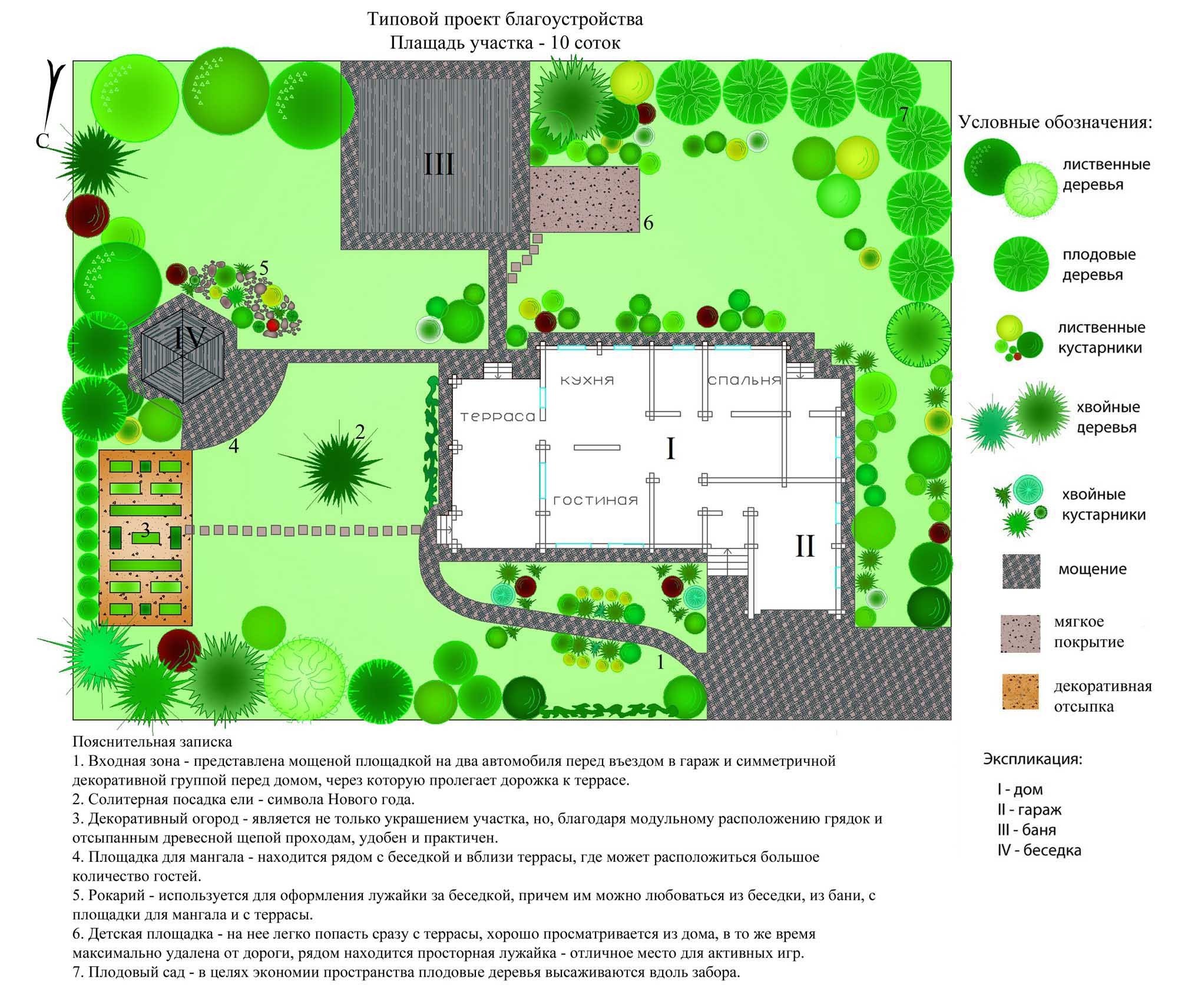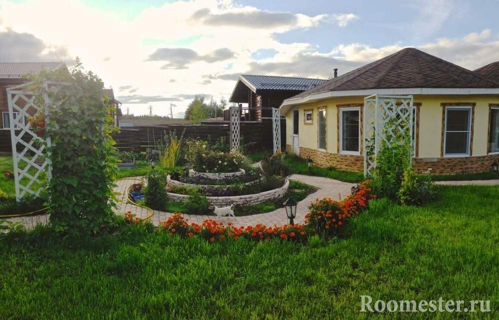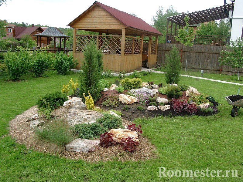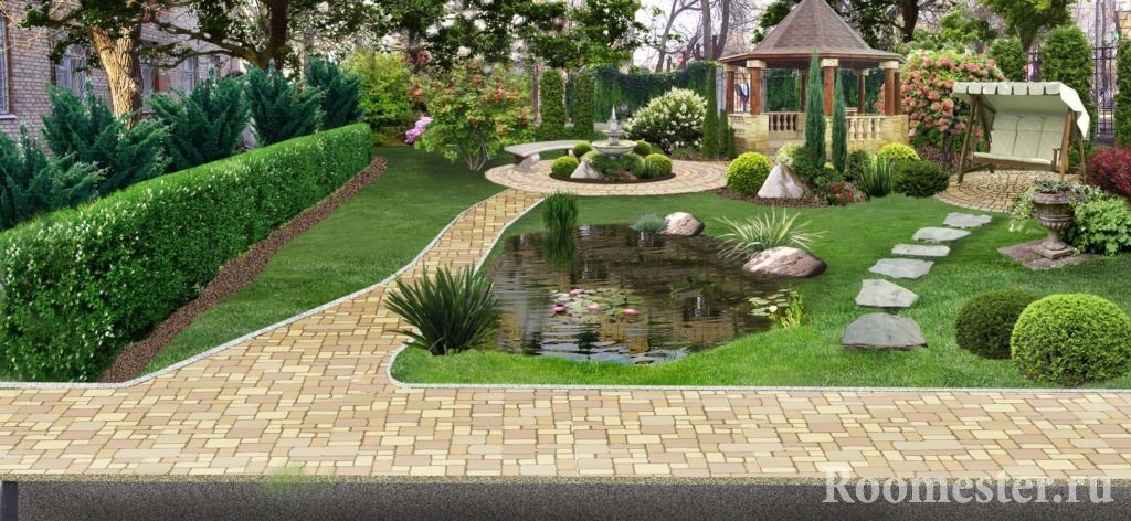 En un área de mil metros cuadrados puede colocar, de hecho, cualquier cosa. ¡Pueden ser macizos de flores, fuentes exóticas, cenadores de barbacoa, árboles frutales e incluso rocas alpinas! Cada uno a su manera ve el lugar ideal para el apaciguamiento. Pero no importa qué elementos planee el propietario para saturar el paisaje circundante, haré todo el trabajo para mejorar el territorio de acuerdo con un escenario. Hablaremos sobre los puntos clave de este último con más detalle a continuación.