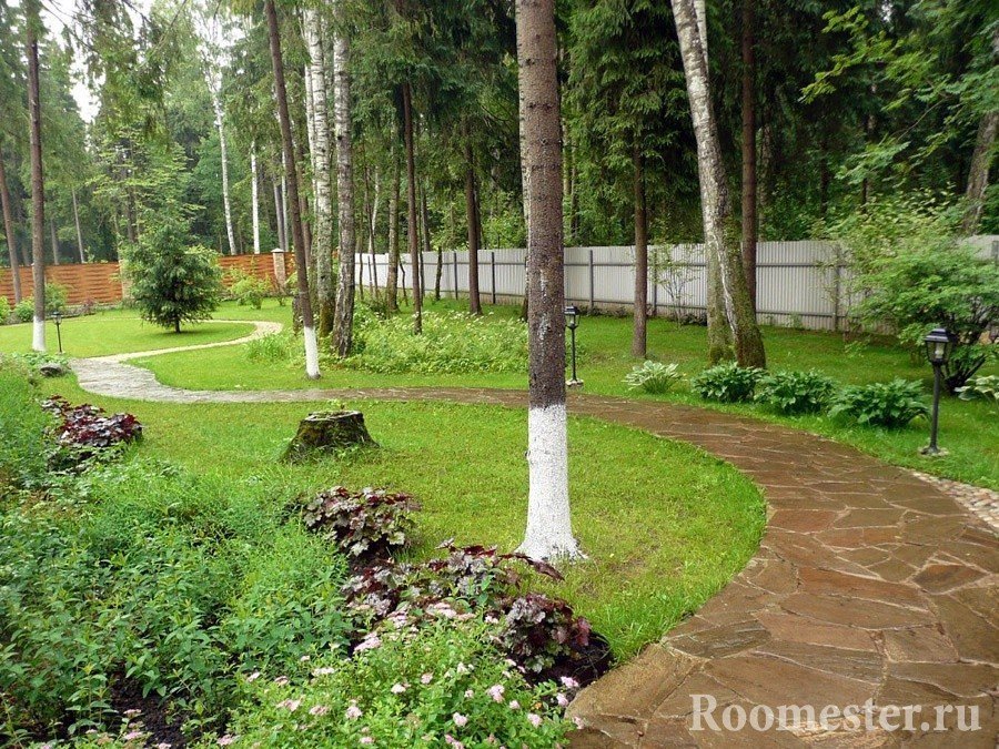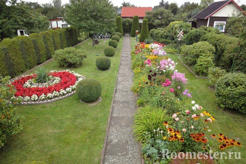 Cada parte del territorio debe ser sabiamente utilizada. Si el área se caracteriza por un clima cálido, la siembra de sombra será relevante para la parte sur de la tierra. Esto la protegerá del calor del sol. Los bordes en blanco y negro sugieren la posibilidad de organizar exuberantes jardines de rosas y rabatoks decorativos. Al mismo tiempo, es importante observar la perspectiva de crecimiento de todas las plantaciones. De lo contrario, puede obtener una jungla africana en lugar de un bonito jardín. Lo difícil que es cuidar el primero, te lo puedes imaginar por ti mismo. Por lo tanto, el intervalo entre todas las plantas debería ser suficiente.
