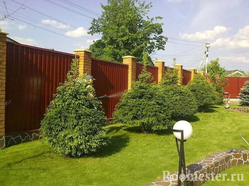 Los setos coníferos son casi universalmente populares. Esto se debe a la falta de pretensiones de los árboles de hoja perenne que no requieren un cuidado personal cuidadoso. A través de especies como el pino, la tuya o el enebro, es fácil obtener una sombra en el verano y, al mismo tiempo, ocultar el baño de la calle. La tuya decorativa se ha arraigado tanto en latitudes templadas que cada segundo restaurante ennoblece su territorio con su ayuda. Sin embargo, los propietarios del proyecto de diseño del paisaje para un sitio de 1000 acres deberían estudiar las propiedades de tres variedades de este árbol: arbustos individuales, árboles atrofiados y especímenes de tamaño mediano.