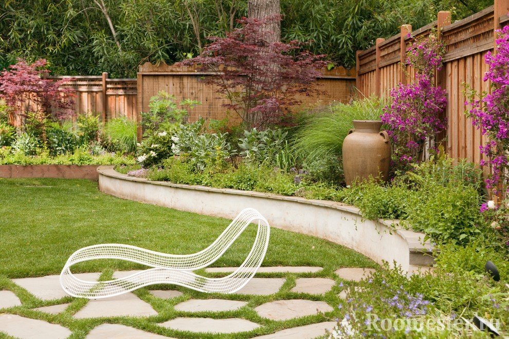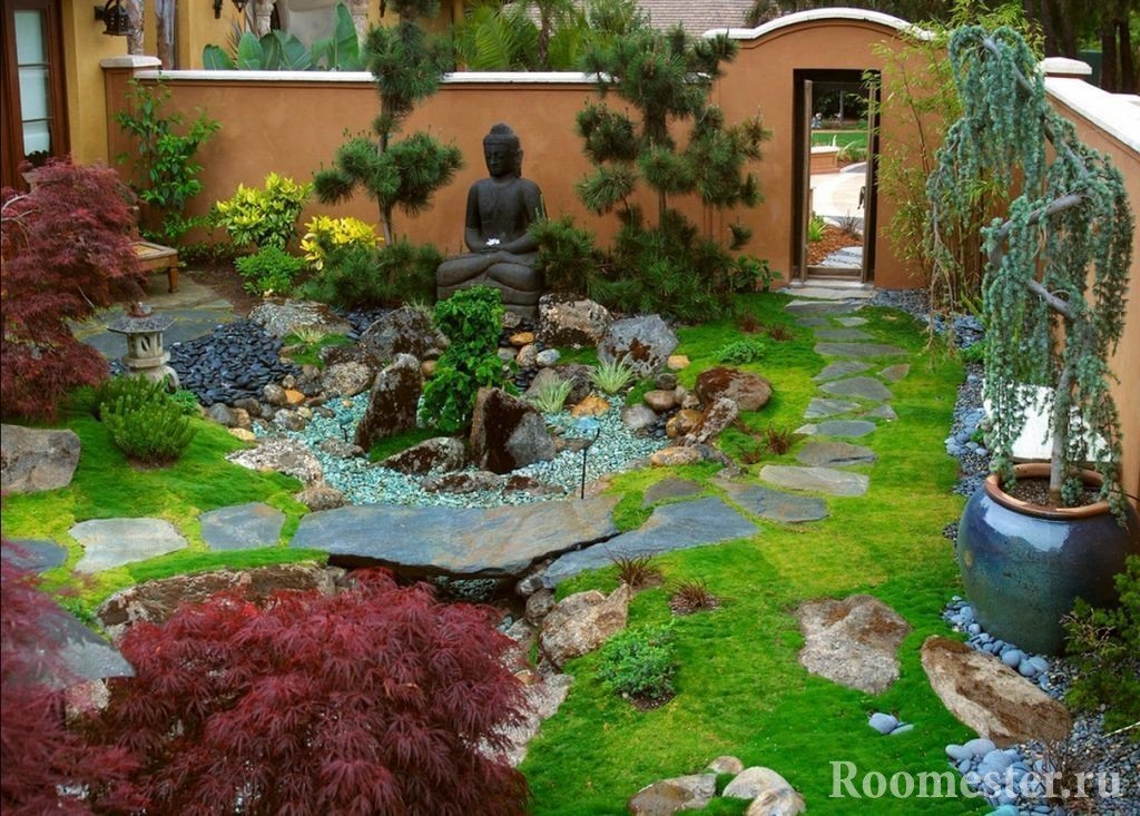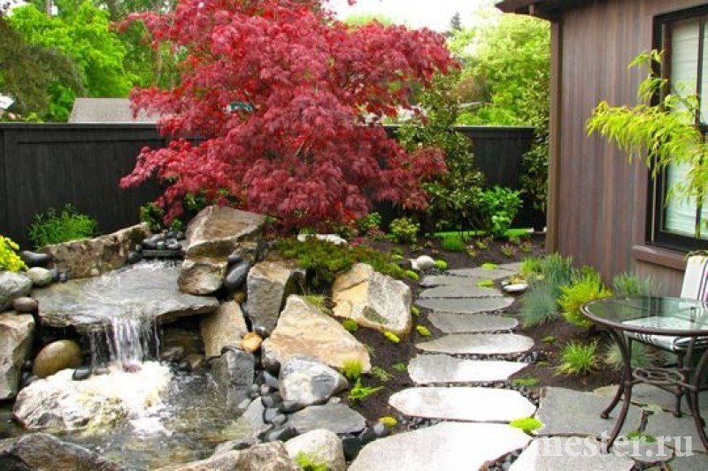 Crear una versión japonesa del diseño no requiere grandes esfuerzos por parte de los propietarios. Aquí el énfasis principal está en la combinación armoniosa de elementos clave. Su combinación competente podrá brindar a todos los huéspedes verdadera paz y felicidad mundana. La calma del jardín oriental es propicio para el razonamiento filosófico, una larga contemplación de la vida silvestre y el replanteamiento de los problemas difíciles de la vida. Aquellas personas cuya profesión involucra actividad cerebral activa, la ubicación en esta área de recreación será similar a permanecer en un centro de salud.