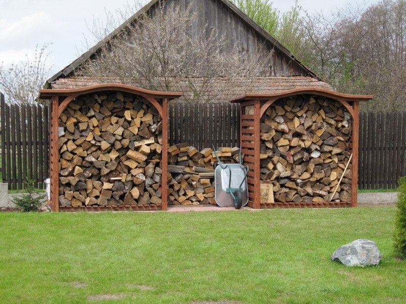Dependiendo del tipo de construcción, pueden ser estacionarias y portátiles. Los segundos se utilizan para almacenar pequeñas pilas de leña. Las leñas abiertas son estructuras cubiertas sobre soportes (toldos). Las cerradas se complementan con paredes y recuerdan más a los hogares típicos. edificios