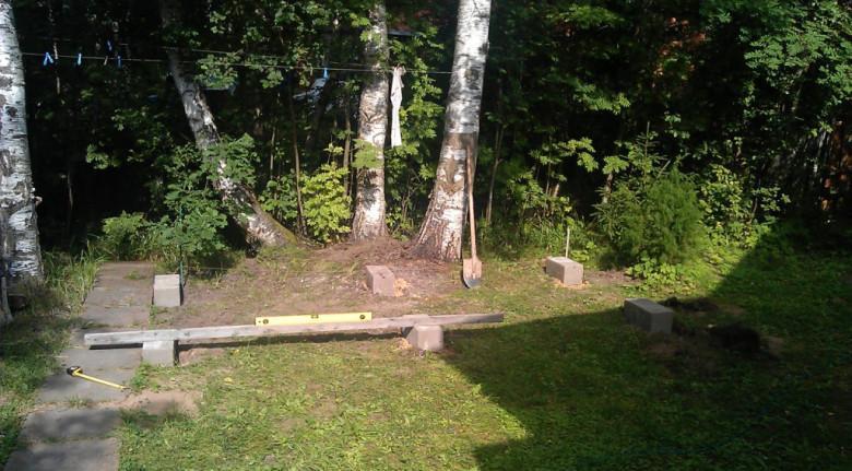 Preparación del sitio. El suelo está apisonada, nivelada y excavada en pozos para columnas con una profundidad de al menos 25 cm.