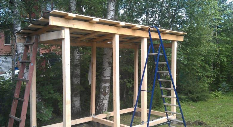 Termine la construcción alineando el material del techo, el piso. El techo debe extenderse más allá del perímetro de la estructura al menos 20 cm y tener una pendiente para que la precipitación no se acumule en la superficie, creando así cargas adicionales en la estructura.