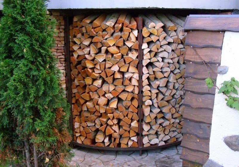 No se puede "mezclar" leña seca con cruda. En la cosecha secuencial, se colocan en diferentes esquinas del leñador o en secciones separadas. En este sentido, la construcción de "bastidores" o "panales" a partir de barriles es muy conveniente. Para cada parte, puede seleccionar un estante separado.