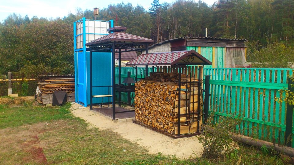 La leña debe ubicarse lejos del edificio de apartamentos. La construcción se refiere claramente al grupo de hogares. Incluso si el leñador está diseñado de manera original y puede complementar el diseño del sitio, el requisito de ubicación "en las afueras" está dictado por la seguridad contra incendios. En situaciones de emergencia, cuando entra en contacto con un fuego abierto, el leñador puede hacer erupción como un fósforo seco. En este caso, debe elegir un lugar para que el combustible no tenga que ser llevado lejos. Si el sitio tiene una casa de baños o un área de barbacoa separada, es aconsejable colocar una leña cerca.