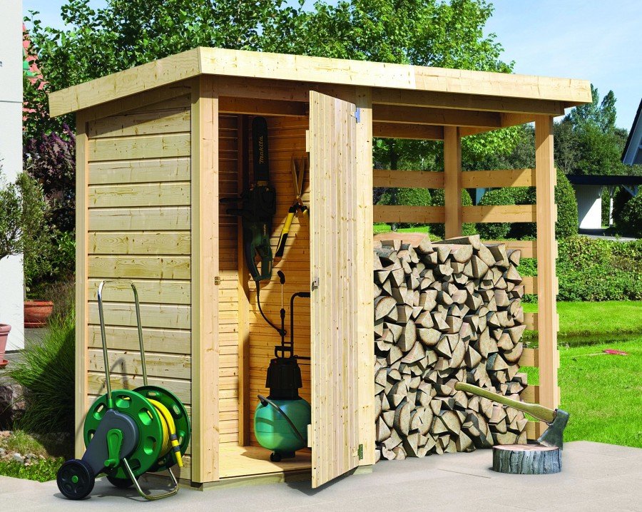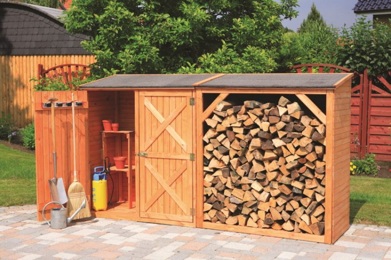 La función principal de la leña es almacenar y proteger de forma compacta la leña del clima. Dado que el combustible se usa solo en forma seca, el techo debe ser duradero e impermeable. Los trabajadores de la leña a menudo se unen a las dependencias existentes. Por ejemplo, un edificio, dividido en dos partes, puede contener leña y herramientas de jardín. El diseño original hará que el leñador sea una adición importante al diseño del paisaje de la cabaña. Las paredes laterales o los pisos deben ser fuertes para sujetar de manera segura las hileras de troncos. Si el edificio está cerrado, proporciona la presencia de ventilación natural, ya que la libre circulación de las masas de aire es un requisito previo para el secado de combustible de alta calidad.