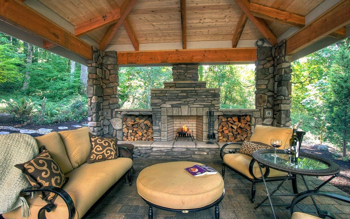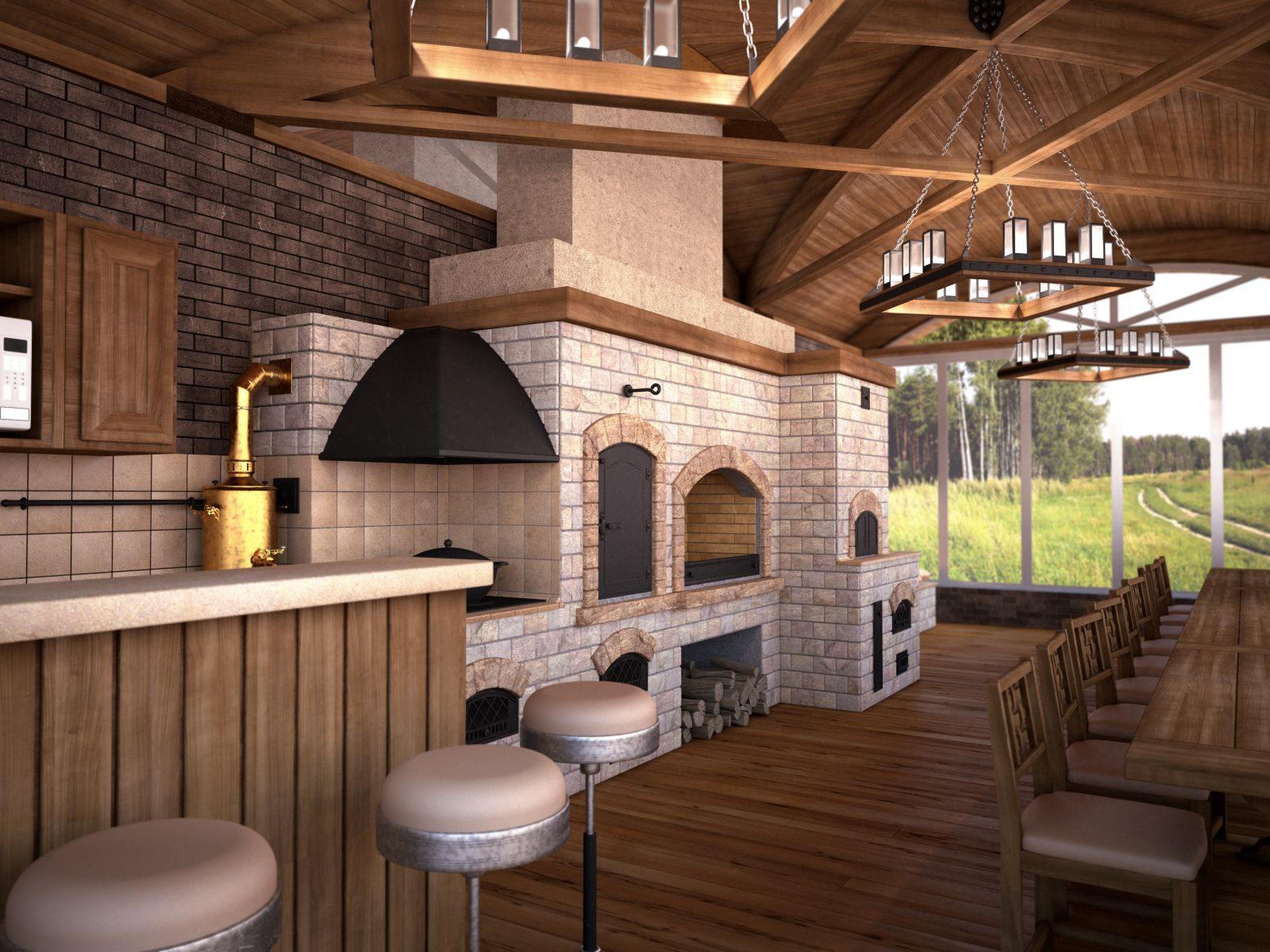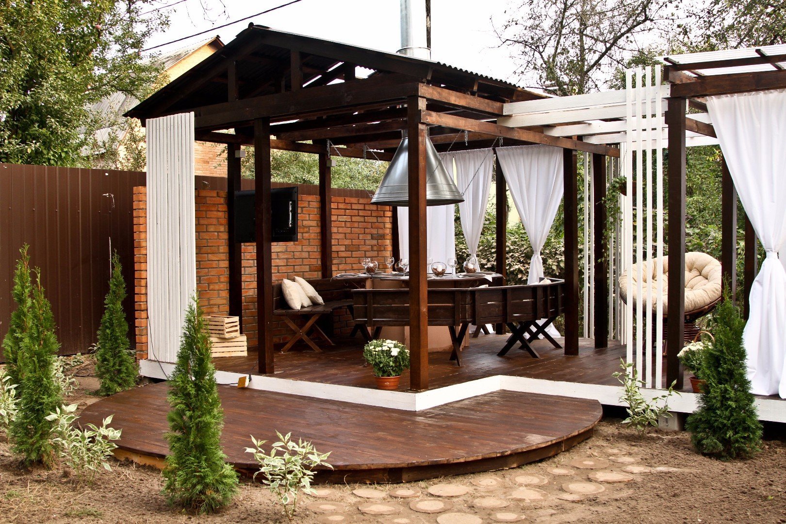 Hay otro tipo: pabellones de barbacoa. De hecho, la unidad para hornear carne y verduras puede decorar el interior de los cenadores abiertos y cerrados. No recomiendan instalar una barbacoa en edificios "vivos", ya que el humo y el calor pueden afectar negativamente a las plantas.