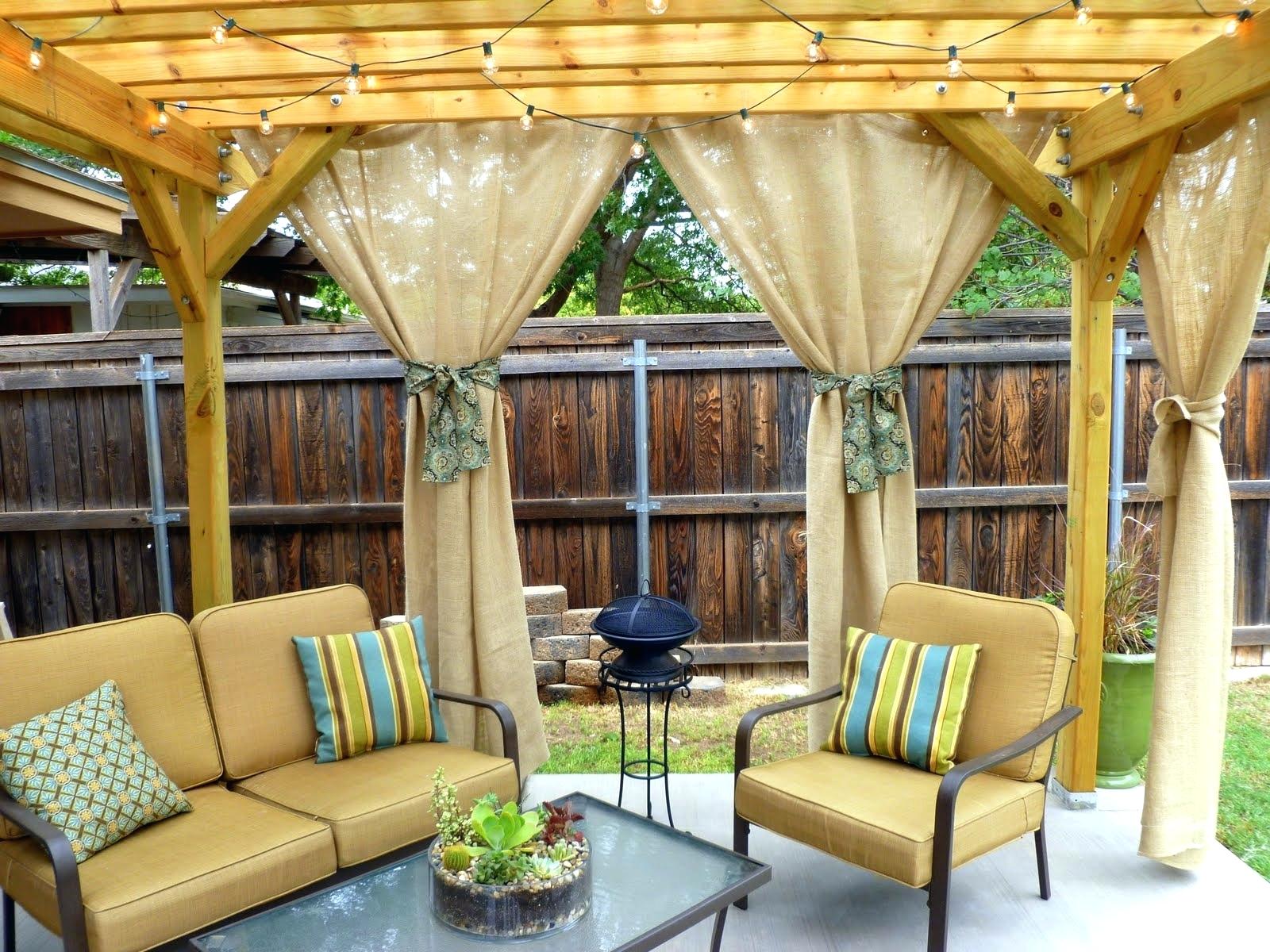 Los arbours están decorados con tela para decorar el hogar. Por lo general, se necesitan textiles para cortinas y cortinas de luz. Decoran ventanas o aberturas en el lugar de donde podrían estar. Para cenadores abiertos, un tul translúcido o "red" es suficiente, lo que salvará a los mosquitos por las noches. En edificios cerrados, las ventanas están colgadas con cortinas llenas. Los interiores clásicos usan cortinas enormes con borlas y lambrequines.