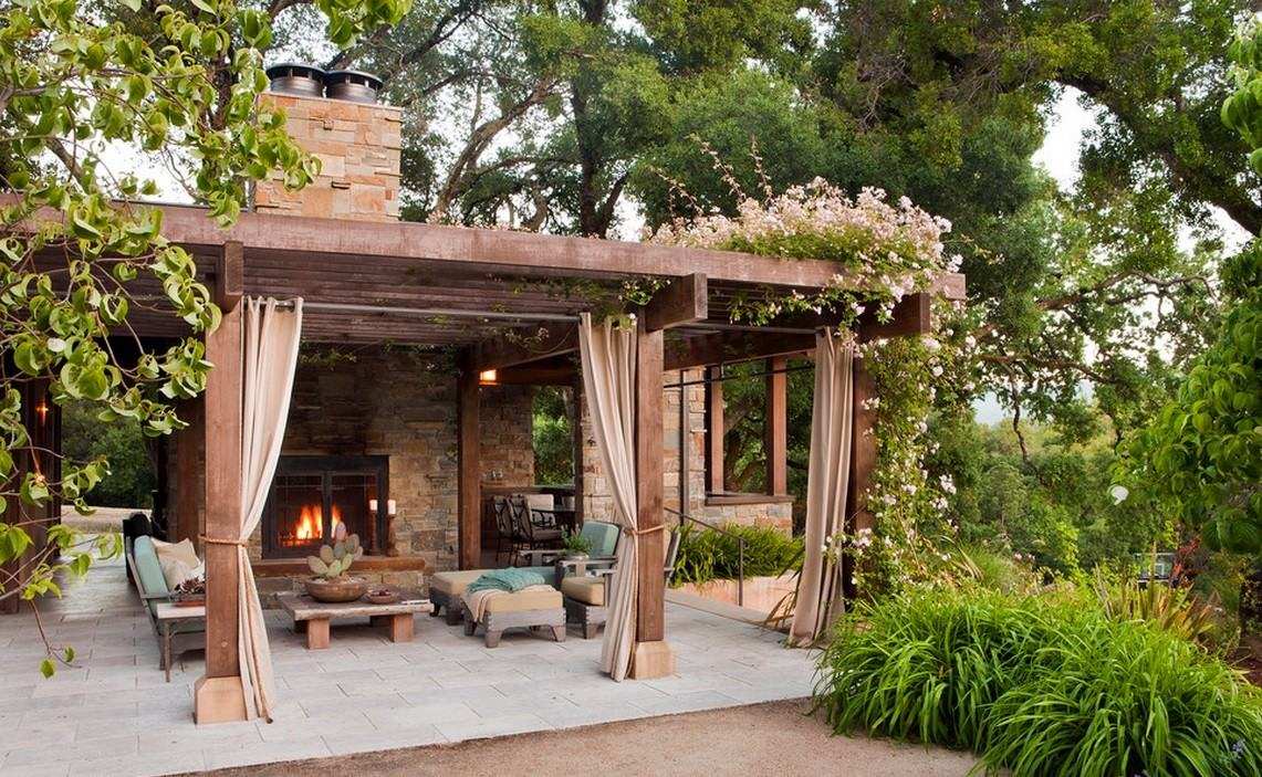 Vivir, o pérgola. Este tipo de cenador sorprende con la belleza de la vegetación. Para construir una pérgola, solo se requerirán pilares de soporte y un marco. Las paredes y un techo en un cenador animado se crean a partir de plantas trepadoras. Su papel puede ser lúpulo, uva, clemátide, hiedra, madreselva, rosas trepadoras, campsis.Tal cenador requerirá cuidados especiales (corte de pelo, riego). Protege solo del sol y en parte de la lluvia, adecuado solo para relajarse en verano.