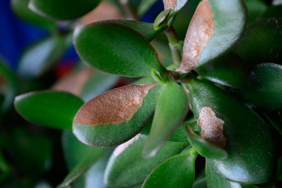 Gusano Polvoriento. Vive en las axilas de las hojas, come su jugo, tejidos vegetales. Esto conduce a un debilitamiento de la inmunidad de la mujer gorda, dejando caer el follaje. Retire el insecto con un chorro de agua. Los hábitats de plagas se limpian con un bastoncillo de algodón humedecido en infusión de ajo.