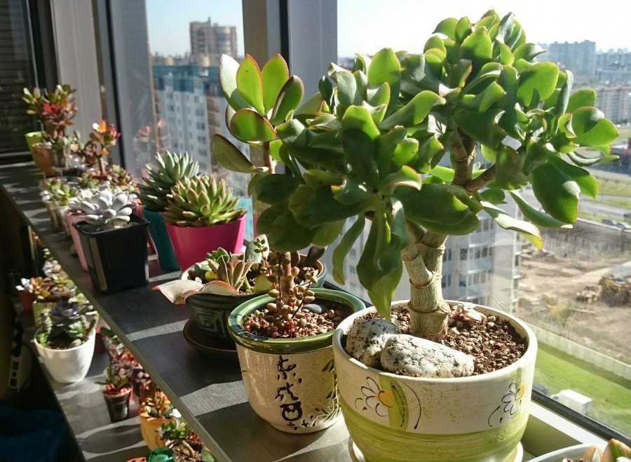 Un lugar ideal para los representantes de las suculentas es el alféizar de la ventana. Es mejor si las ventanas están orientadas al sur, sureste. En la ventana sur, las plantas tendrán que sombrear cuando el sol esté en su cenit. El lado norte no es un tabú para la gorda. Pero, el árbol del dinero subirá, las ramificaciones se detendrán, y los tallos se debilitarán y dejarán de endurecerse.