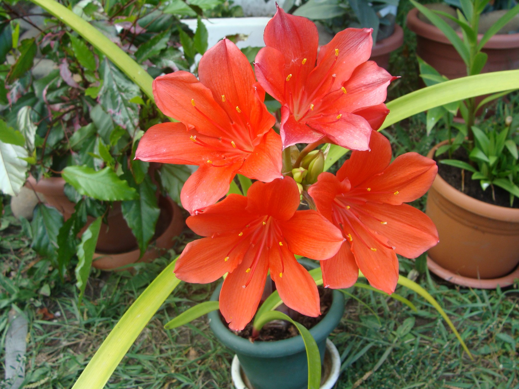 Las hojas de clivia son muy oscuras y densas, el bulbo está ausente, las raíces están engrosadas. En lugar de una vena central, hay tiras transversales longitudinales.