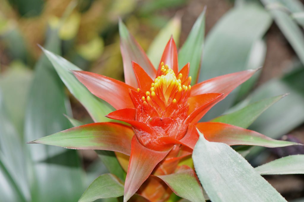La planta herbácea se parece a un montón de largas hojas coriáceas. A la edad de 2-3 años, florece guzmania. Después de que cae el color, la planta se desvanece, vive aproximadamente un año. Durante este tiempo, lanza brotes jóvenes, que deben ser separados para su reproducción.