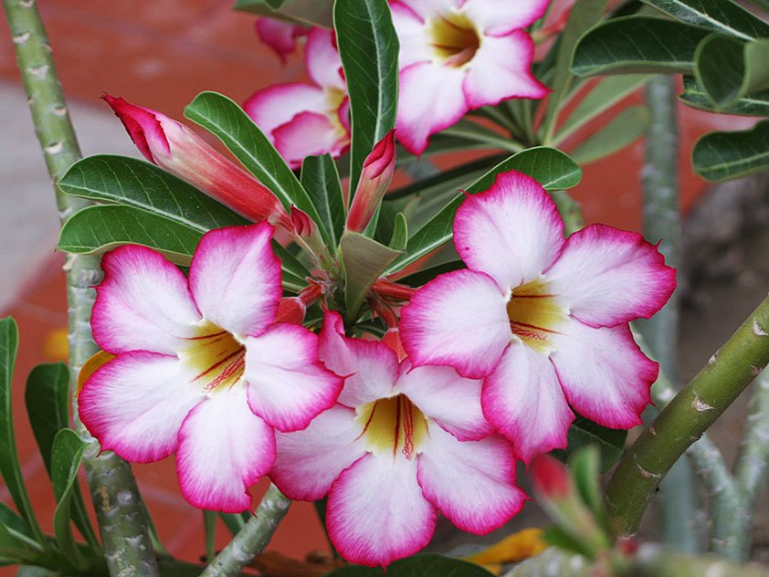 Riega el adenium mientras se seca el suelo. La flor no es caprichosa para las condiciones de temperatura y humedad del aire. Durante el período de crecimiento activo, sus verdes pueden rociarse con poca frecuencia. Propague la planta por semillas, esquejes apicales, capas de aire.