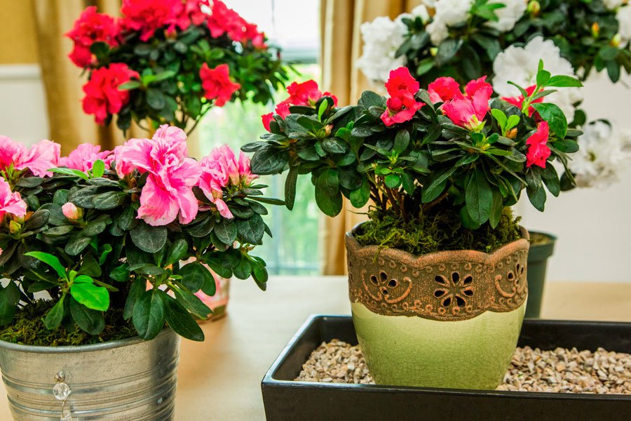 Azalea se desarrolla bien en sombra parcial. Ella necesita aire, así que en verano la olla se lleva afuera. Riegue la planta con frecuencia, sin permitir que el sustrato se seque. El aflojamiento se excluye debido a la estructura especial de las raíces y su fragilidad.