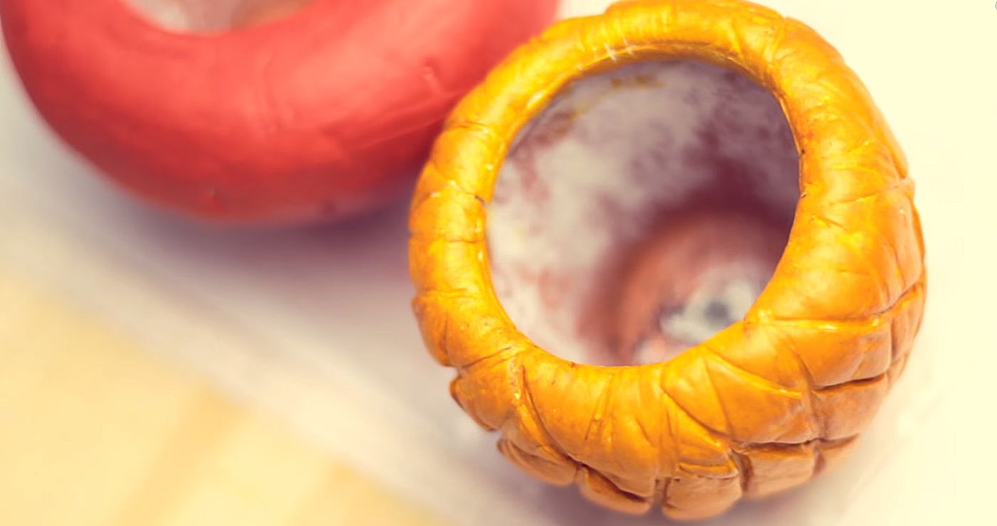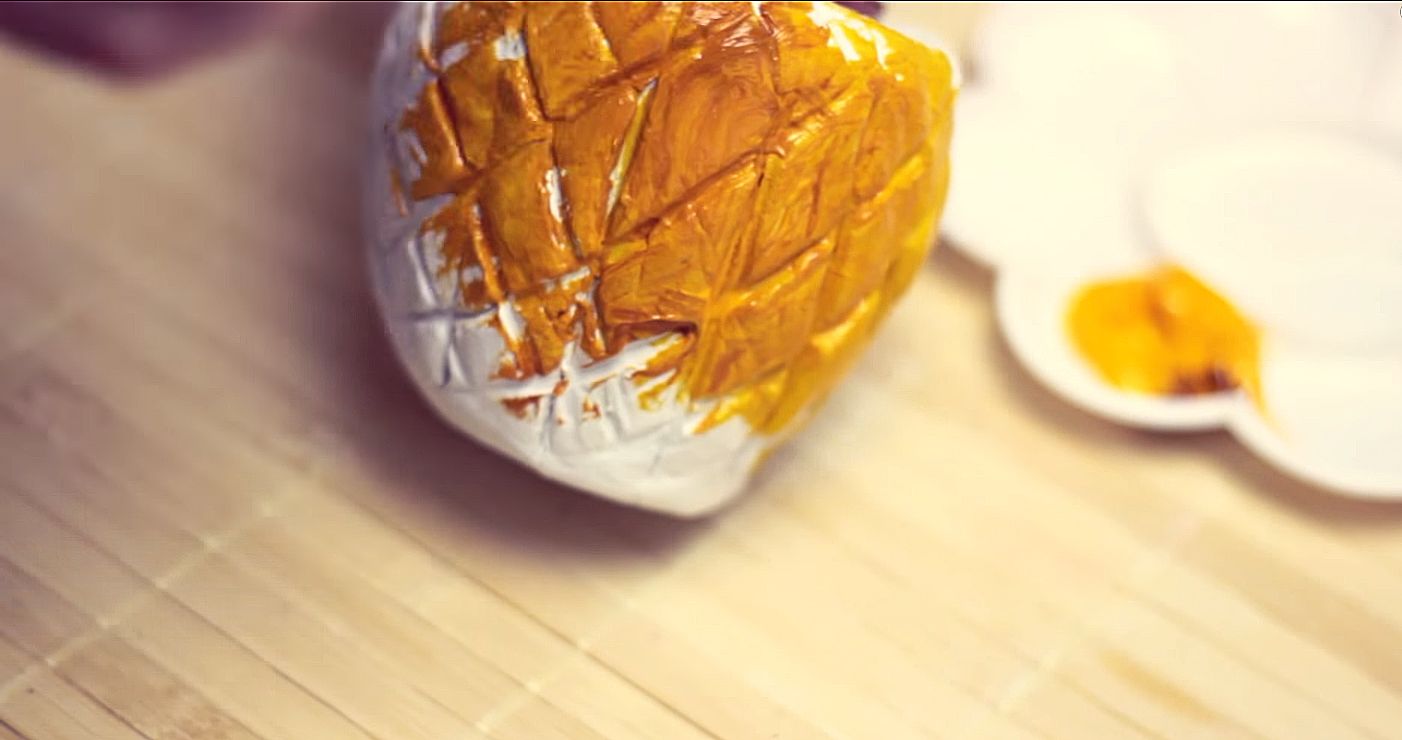 Luego rociamos barniz transparente o esmalte de perlas en la olla.
