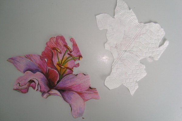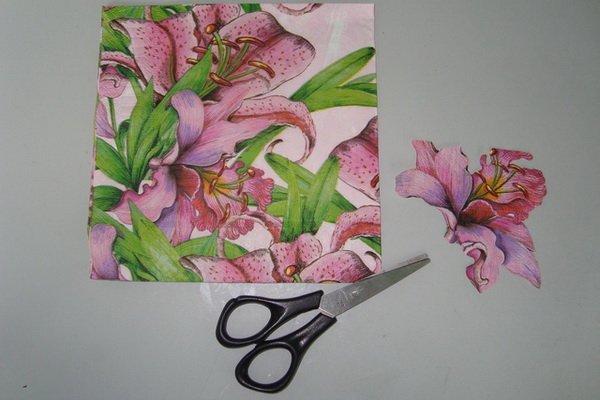 Para que la imagen se vea atractiva, debe elegir un buen material para transferir.Para los principiantes, es mejor usar una servilleta simple de tres capas o tarjetas especiales de decoupage. Una gran variedad de orientación estilística le permite elegir la imagen adecuada para cualquier ocasión.
