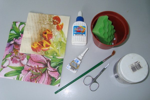 Una forma efectiva de decorar macetas con servilletas ayudará a colocar orgánicamente una maceta simple en cualquier interior. El material seleccionado se une a la maceta con pegamento y se recubre con barniz. Para la decoración, un contenedor de cualquier material es adecuado. Si tiene una superficie resbaladiza, como el plástico, deberá lijarse para un mejor agarre.