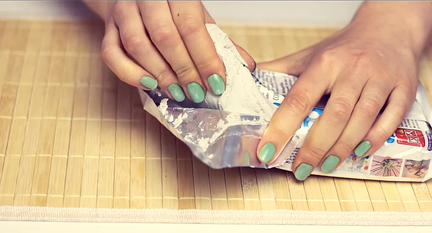 Hacemos una solución de yeso, mezclamos el polvo con agua 2: 1;