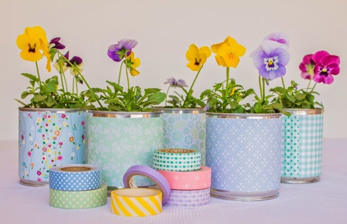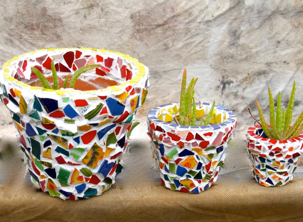 Lata y maceta de mosaico
