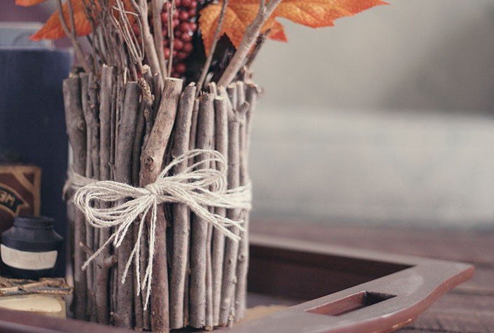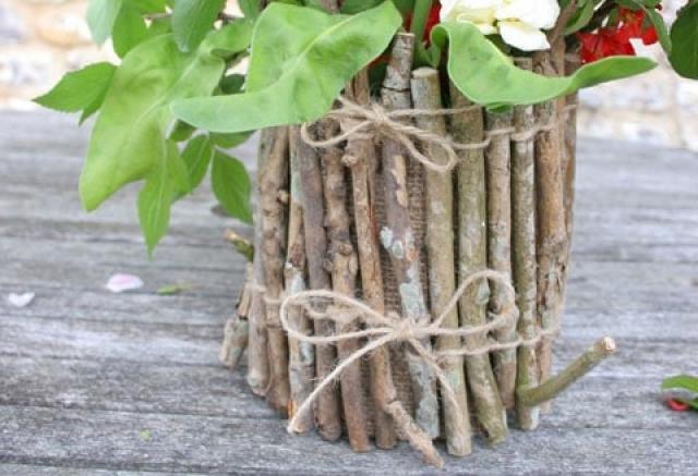 Una maceta hecha de palos y ramitas encaja perfectamente en el interior de estilo ecológico. Una forma sencilla de colocar palos y atar con un hilo de lana es adecuada incluso para principiantes. Para implementar un tejido más complejo, deberá practicar.