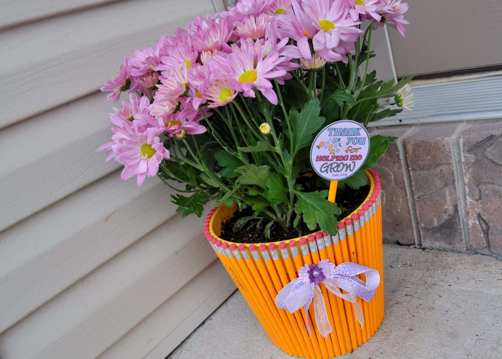 La segunda opción de decoración es el uso de lápices simples con un borrador en un extremo. Colóquelos con el elástico hacia arriba y ajústelos a la olla. Los rotuladores, los lápices de cera y los crayones también se pueden usar como decoraciones. El toque final es una cinta brillante con un lazo alrededor del producto.