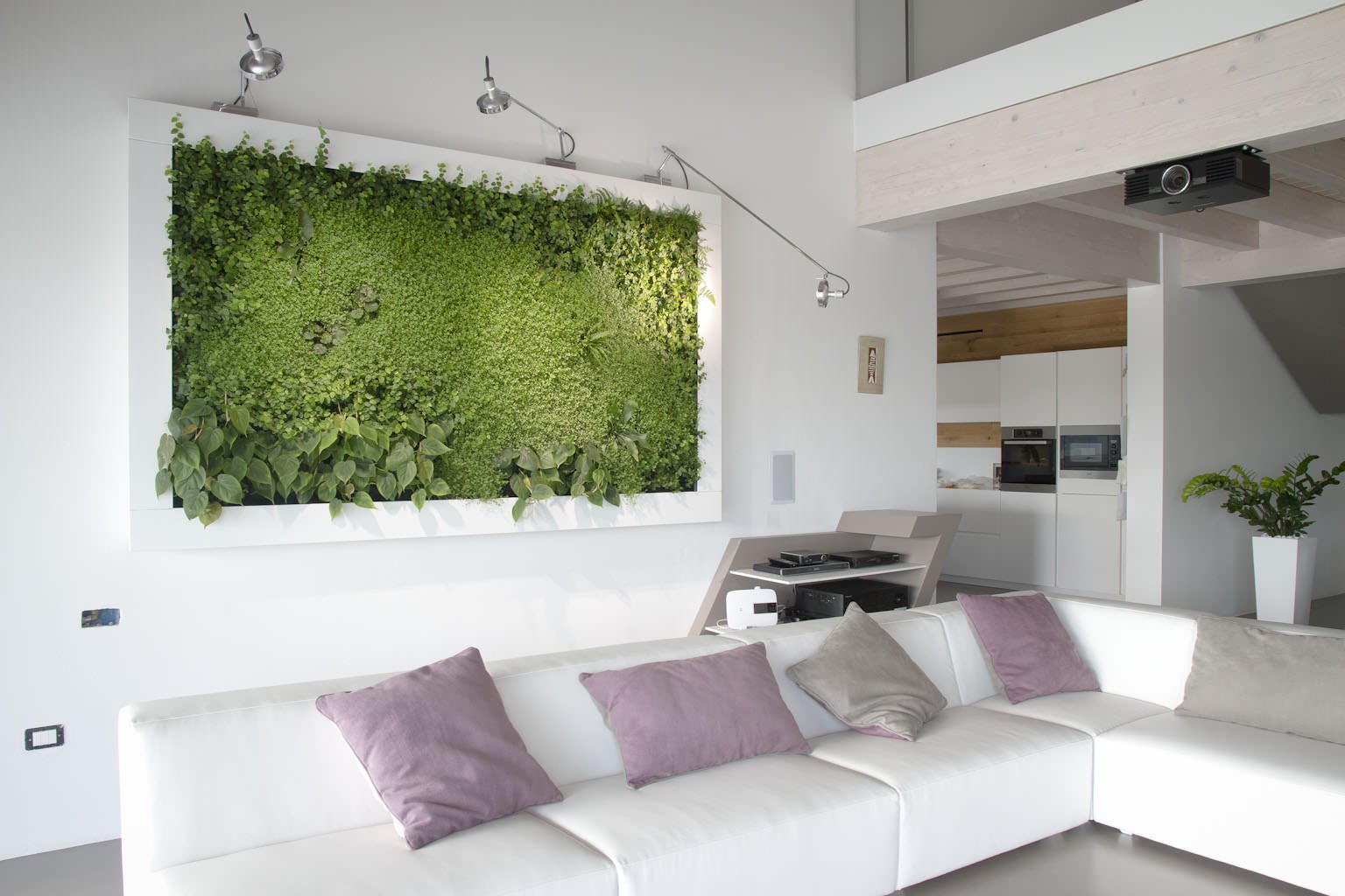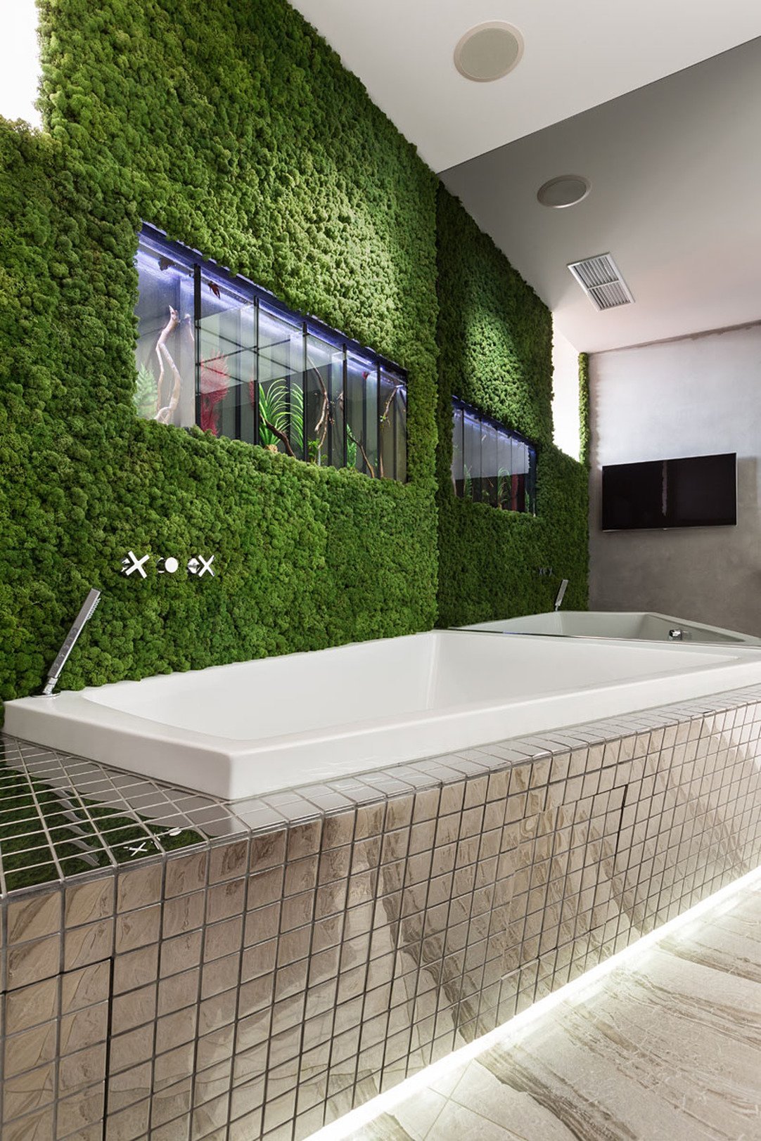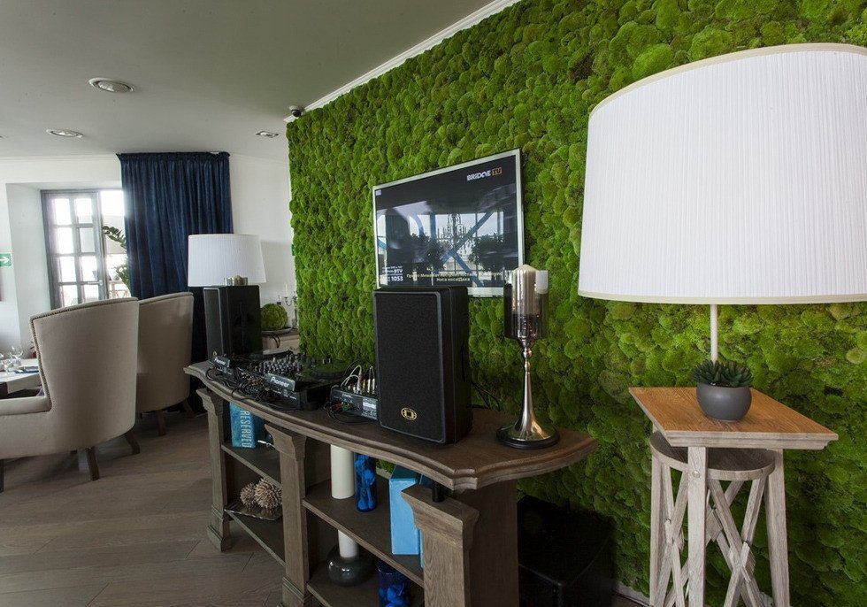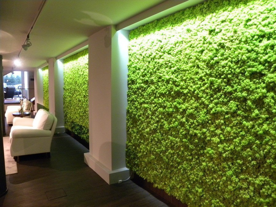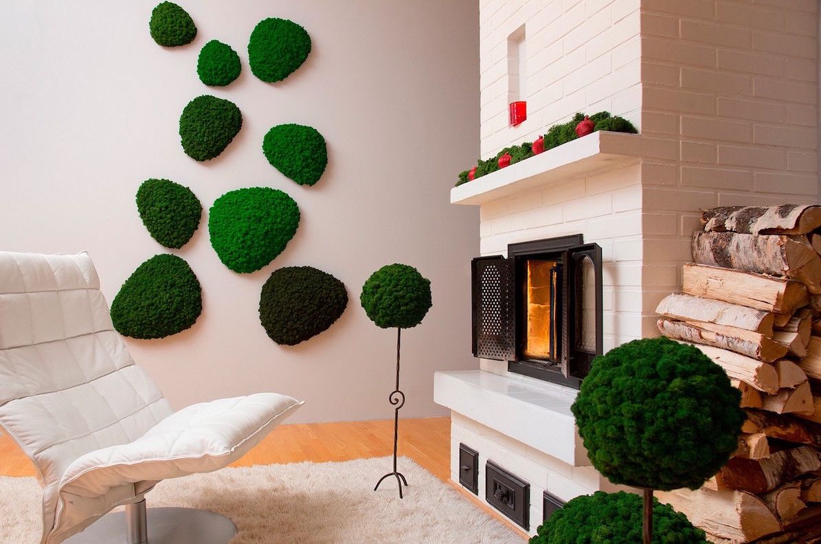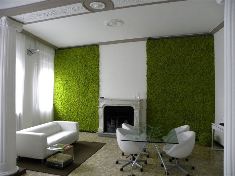 El paisajismo moderno y el estilo de la vivienda se pueden combinar fácilmente utilizando un hermoso musgo en el interior. Las plantas de esporas requieren un cuidado mínimo, se ven pegadizas e inusuales. Se utilizan para diseñar pinturas, decorar muebles y lámparas. Se pueden colocar verticalmente en las paredes, enfatizando el diseño creativo de los locales. Las plantas de esporas no tienen raíces: están unidas a la base con mini raíces o pegadas. Esta característica hace que estos elementos sean fáciles de usar. Los musgos pueden distinguir partes individuales de la habitación, para llevar a cabo la zonificación original del área. Se pueden usar en todas las partes de la casa, incluidos los dormitorios y pasillos. Las plantas de esporas seleccionadas adecuadamente y su ubicación correcta proporcionarán una apariencia extraordinaria de las instalaciones, una estilización brillante y llamativa del diseño.