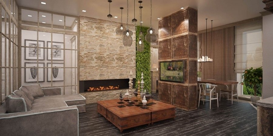 Las habitaciones espaciosas son ideales para decorar con plantas de esporas. La presencia de muchas opciones para su decoración simplifica la selección de opciones adecuadas. Las soluciones estilísticas más populares para salas de paisajismo incluyen: