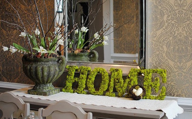 Es inusual decorar un apartamento y hacer que su decoración sea fabulosa utilizando numerosas composiciones de plantas estabilizadas. Se pueden ubicar en jarrones altos y macetas, reemplazando los arreglos florales habituales. Las plantas de esporas en grandes jarrones de vidrio se ven elegantes. Se pueden reemplazar con productos de vidrio similares con una base plana y una cubierta de domo. Típicamente, tales composiciones se complementan con figuras en miniatura de casas, animales o personajes de cuentos de hadas. Para implementar tales ideas, incluso se pueden usar grandes matraces de laboratorio. Bolas de esporas con platos de madera: platos, bandejas, no se ven menos originales. Los platos estilizados hechos de ramitas, cuernos de venado, astillas de madera, decorados con plantas verdes estabilizadas (formadas con bolas y cubos) se ven hermosos.