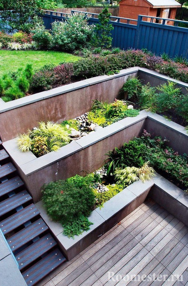 La creación de un jardín en forma de terraza de varios niveles será muy inusual, pero al mismo tiempo efectiva. Casi todas las verduras son anuales en la banda media, no puede temer la congelación completa de la colina creada artificialmente. Al crear tal elemento del paisaje, la vista general de la parcela del jardín adquiere una forma hermosa, visualmente da la impresión de un aumento en el área.
